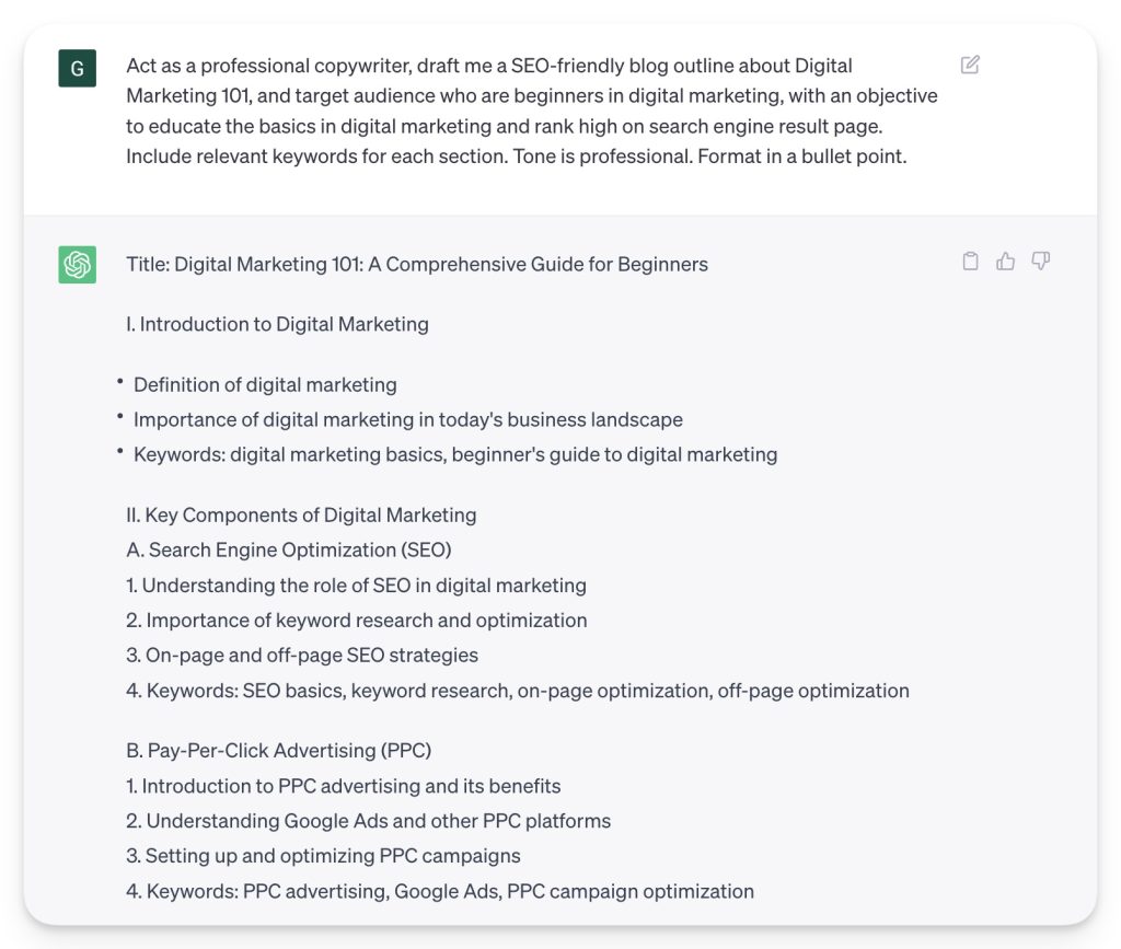 ChatGPT can increase your content creation productivity by 10 times, and I mean it. You can ask ChatGPT to create a blog outline quickly and it will save you lots of time structuring the article flow and researching the ideas to start with.