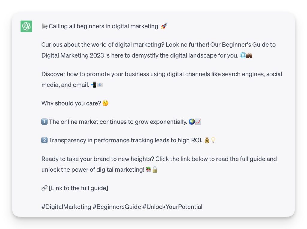 You can see, basically you can ask ChatGPT for anything, and so the prompt list can be endless! Though, one thing to keep in mind,  you should have your own judgment to the ChatGPT output, always to do a fact check and make changes to the output to make it accurate to your audience, because at the end, we understand our brand and customer better better that ChatGPT does, and also we are digital marketers with critical thinking. Now, with all the ideas we discussed, you can create your own ChatGPT prompt list for digital marketing!