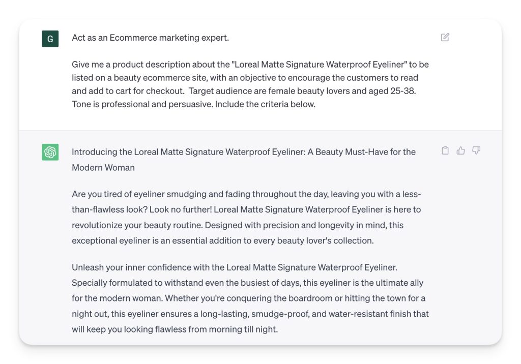 You can see! Isn’t it impressive? It can save you and your ecommerce team a tone of time of generating meaningful product description. You can even hint ChatGPT with some specific keywords if you already got some keyword ideas.